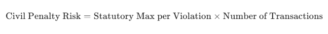 The statutory maximum for civil penalties is adjusted periodically for inflation and is often calculated per violation. For egregious cases, the base penalty can be the statutory maximum or the full value of the underlying transaction.